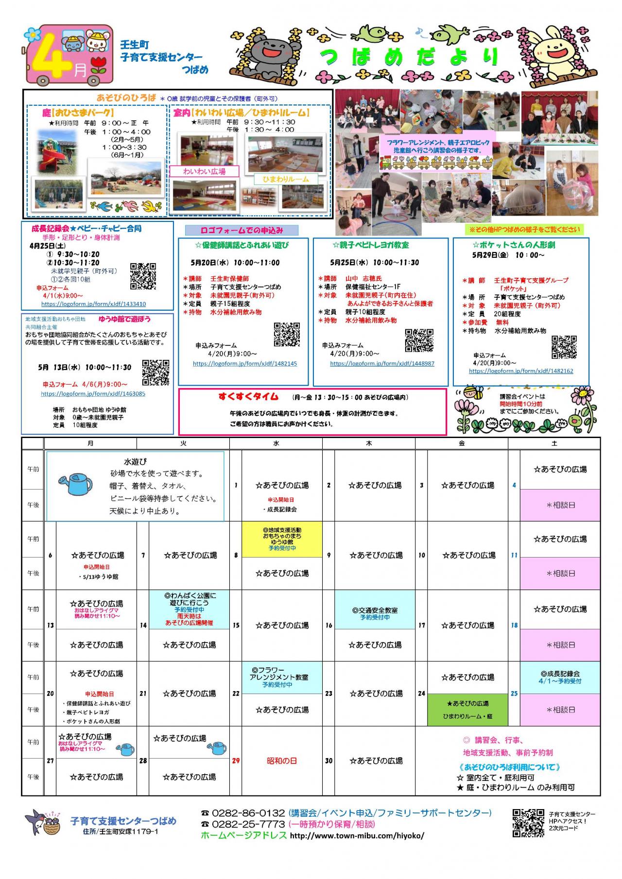 子育て支援センターつばめの予定です。