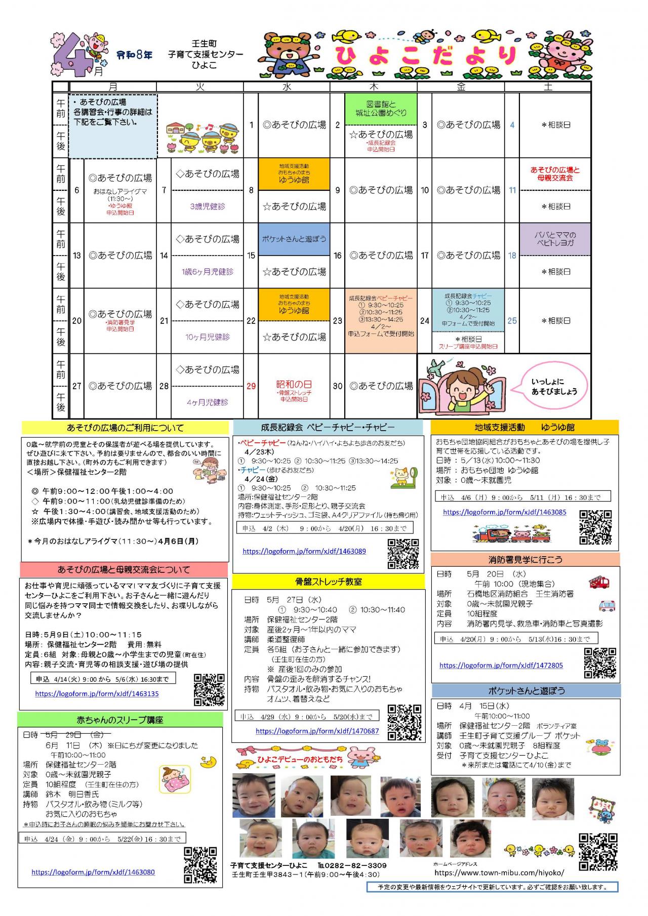 子育て支援センターひよこの予定です。遊びに来てくださいね。