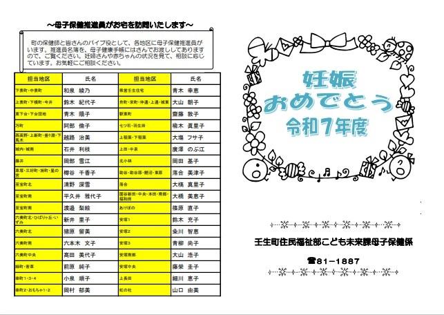 町の保健師と皆さんのパイプ役として、各地区に母子保健推進員がいます。